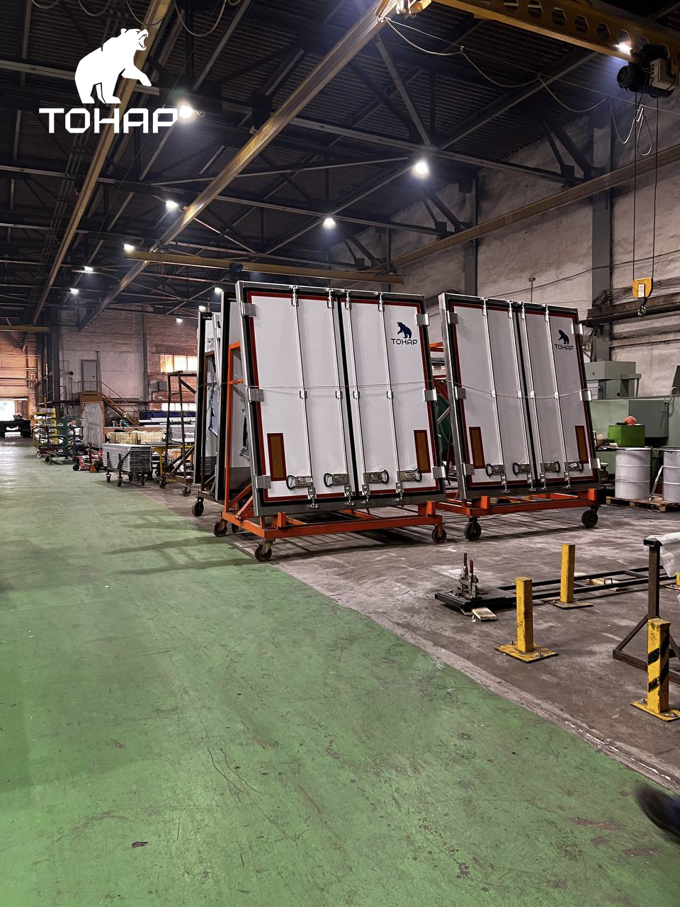 Техника изготавливается роботами на производственных линиях. Каркас имеет усиленные, прочные сварные рамы. Кузов защищен от сильных нагрузок и коррозии, подходит под российские климатические условия. Вес грамотно распределяется по осям, амортизация защищает груз от повреждений. Запчасти Тонар можно купить у лучшего его дилера по запасным частям.